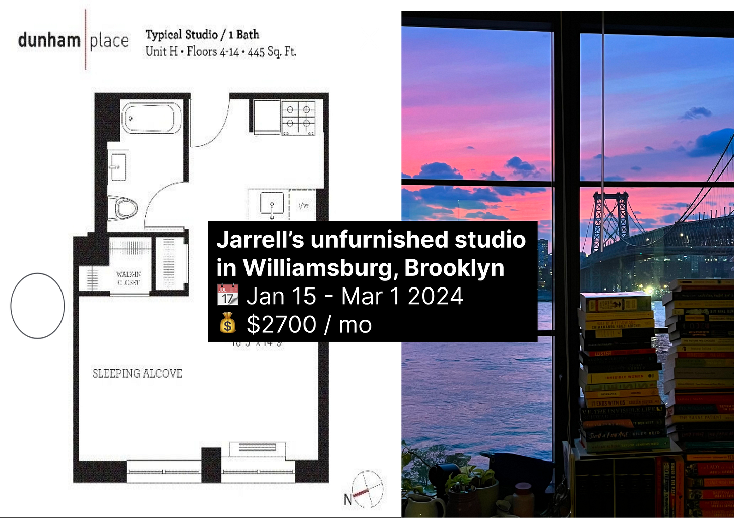 If you’re interested in any of this week’s listings, please reply or email us at subletter@substack.com to let us know which one you’re interested in!